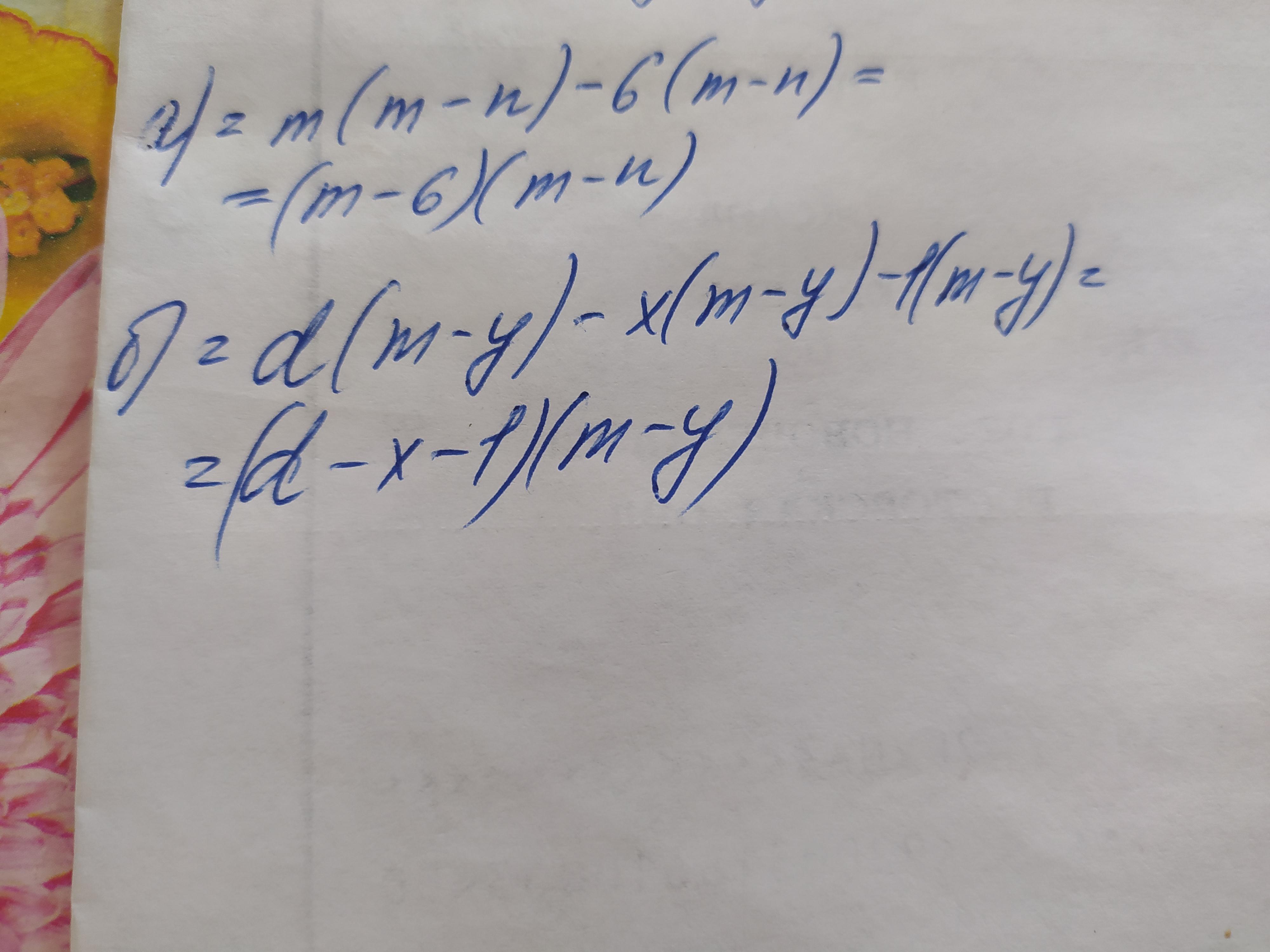 б) dm-dy-mx+yx+y-m = -d(y-m) + x(y-m) + y-m = (y-m)(x-d+1)