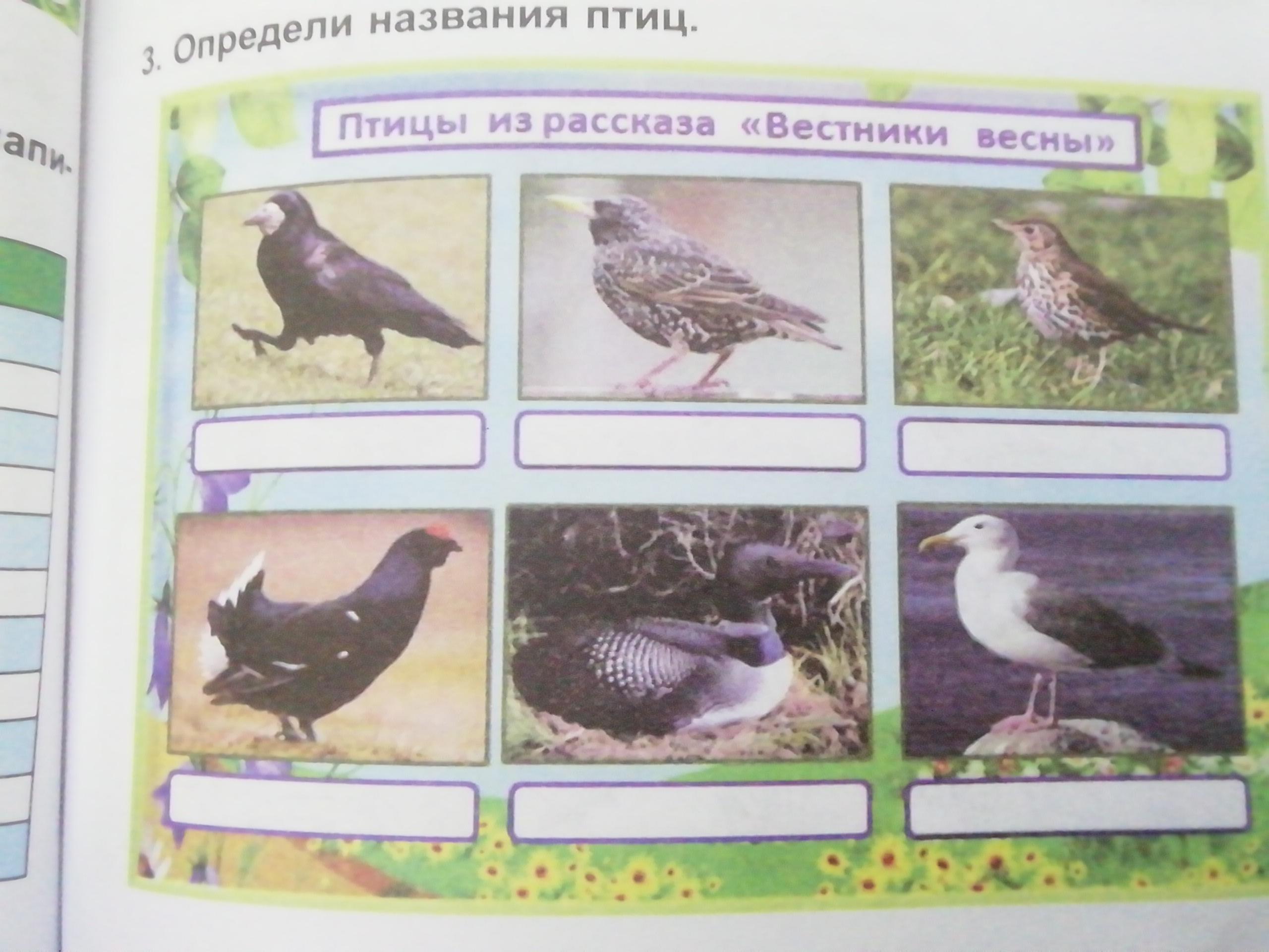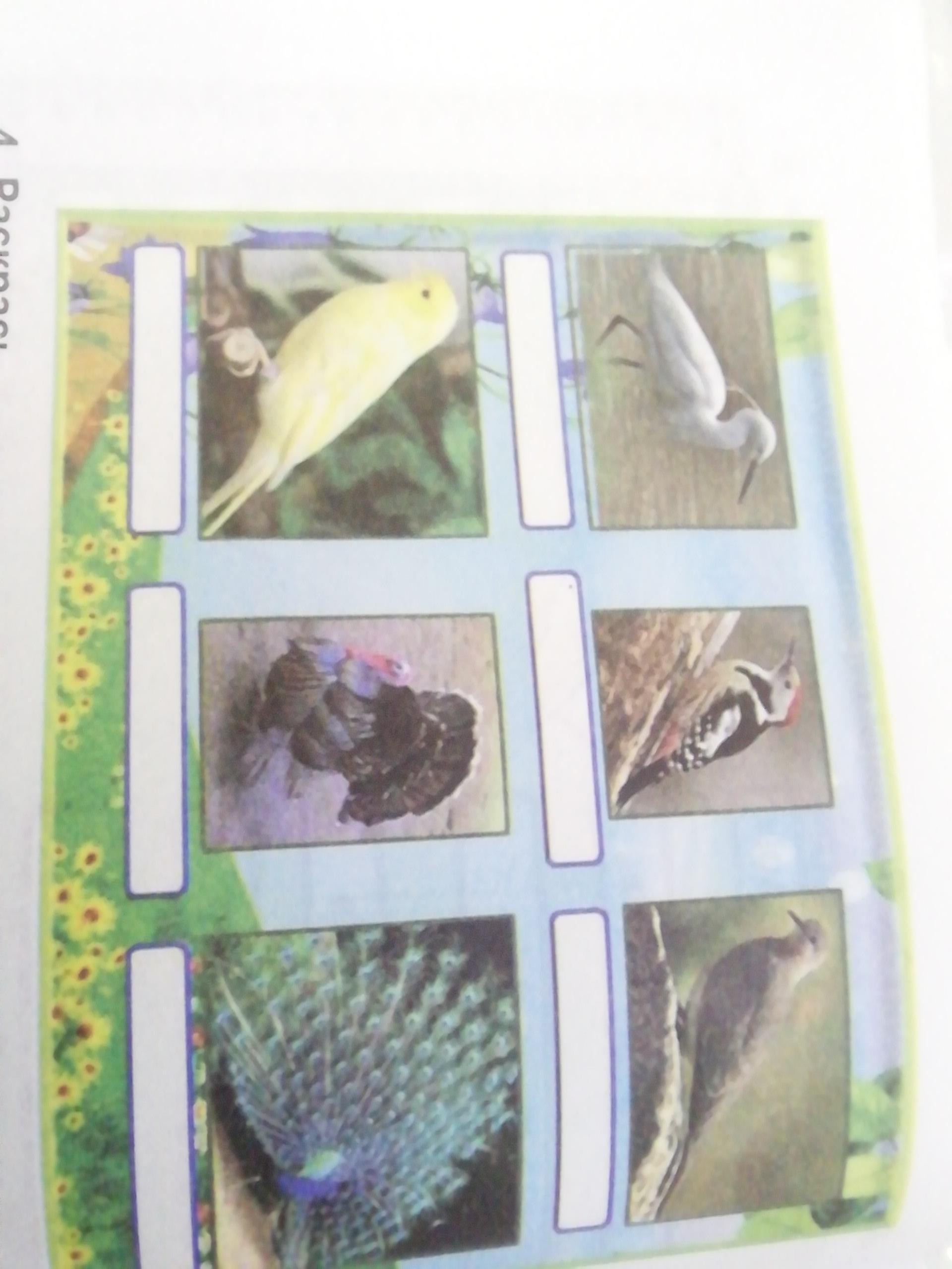 птицы: 1)ворона 2)скворец 3)соловей 4) курица 5)гагара 6)чайка 7)цапля 8)дятел 9)голубь 10)канарейка 11)индейка 12)фламинго