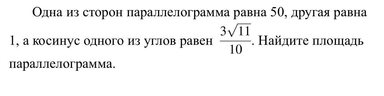 sin = √(1 - (3√11/10)²) = √(1 - 0,99) = √0,01 = 0,1