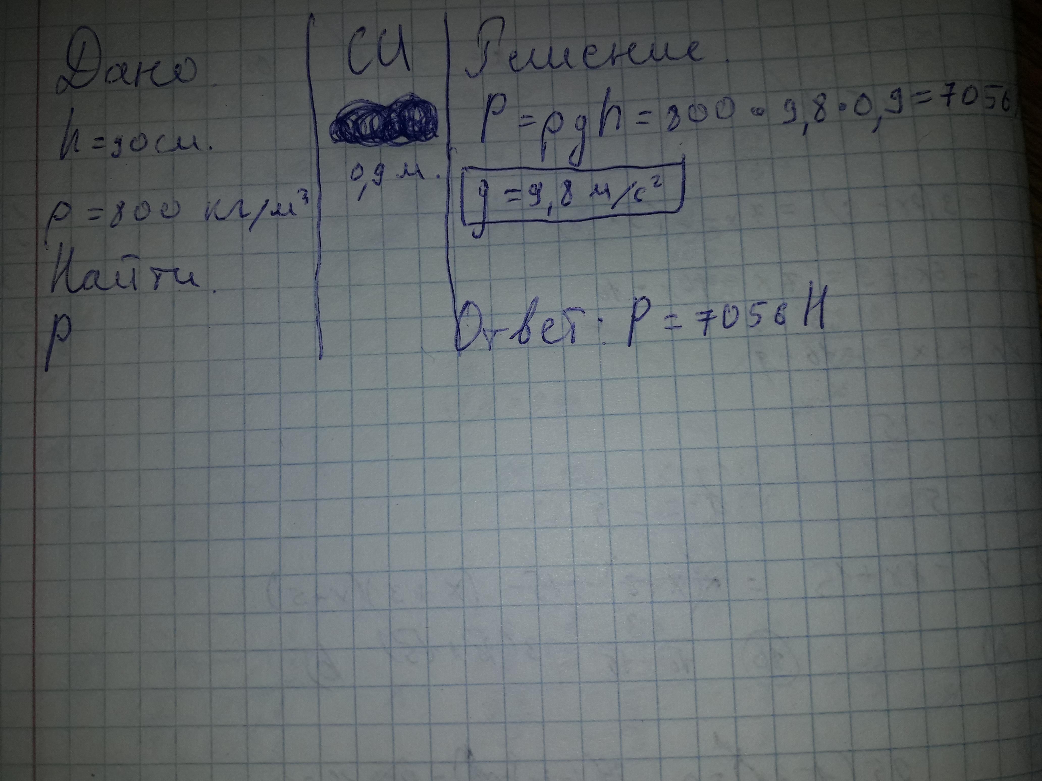 Визначити тиск нафти на дно бака, якщо висота її рівня 90 см, а густина 800 кг/м3