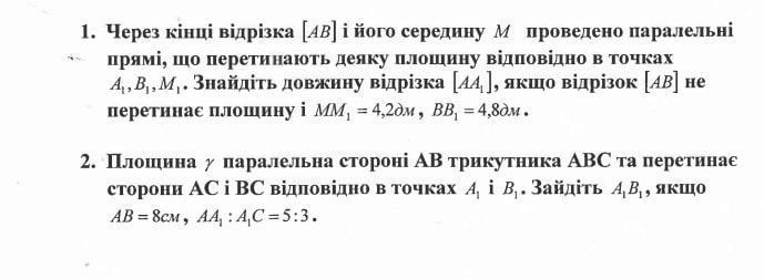 1) Чотирикутник АВВ1А1 - це трапеція ( АА1 || ВВ1 ), а ММ1 - це її середня лінія ( АМ = МВ, ММ1 || АА1 та ММ1 || ВВ1 ). Відомо, що ВВ1 = 4,8 дм. , а ММ1 = 4,2 дм. Так як ми довели, що ММ1 - це середня лінія трапеції АВВ1А1, то наскільки ММ1 меньша за ВВ1 на стільки ж АА1 меньша за ММ1.