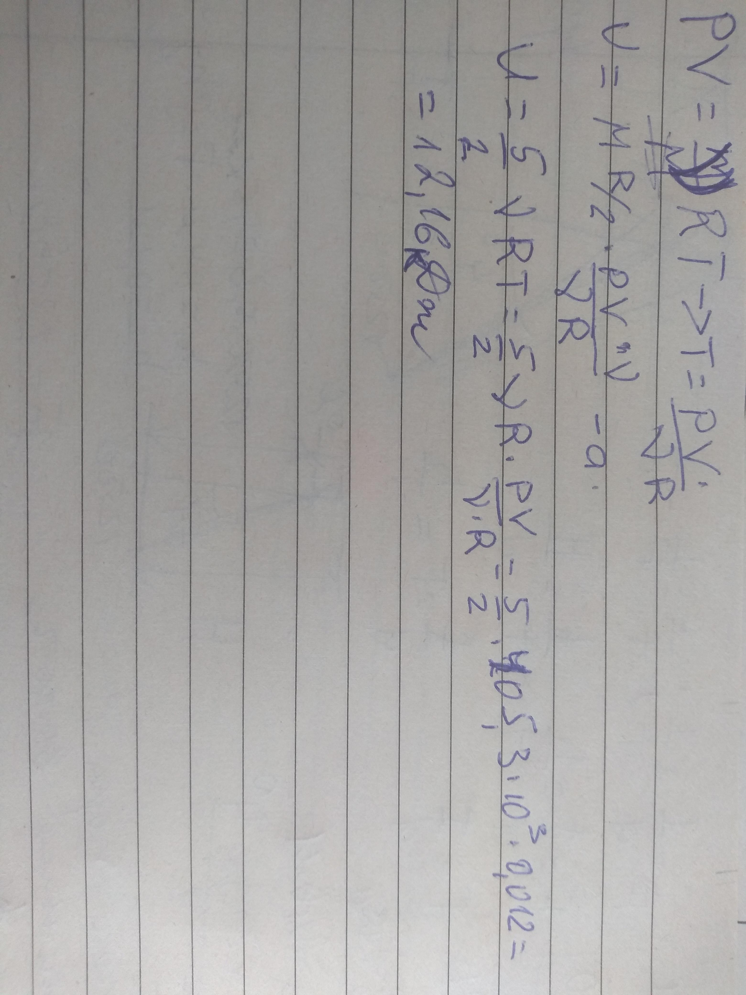 Определите внутреннюю энергию 2 моль азота, который занимает объем 12 литров при давлении 4 атмосферы