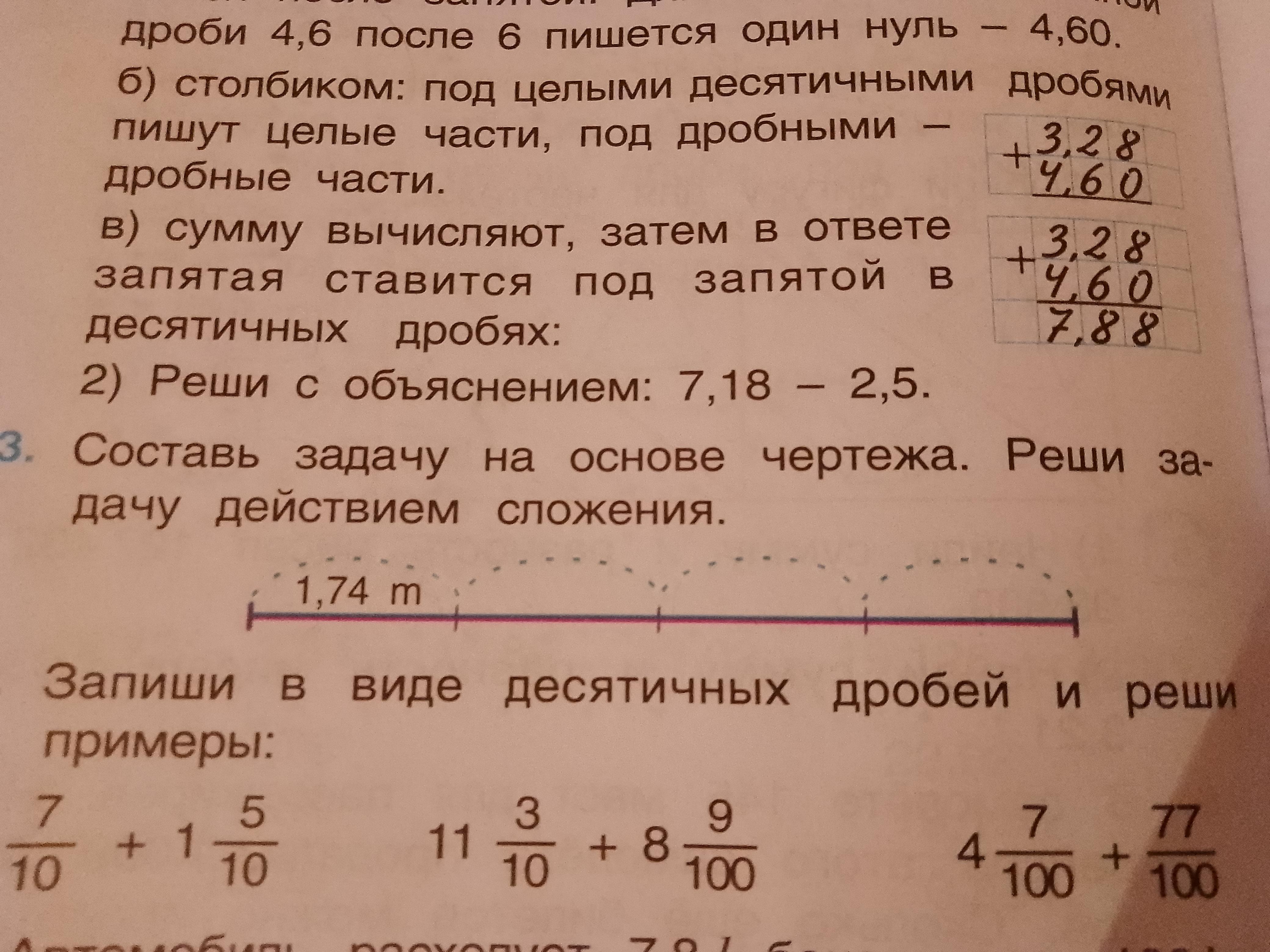 Дан отрезок, разделённый на 4 одинаковых части. Одна из этих частей равна 1,74 м. Вычислить всю длину отрезка, используя действие сложения.