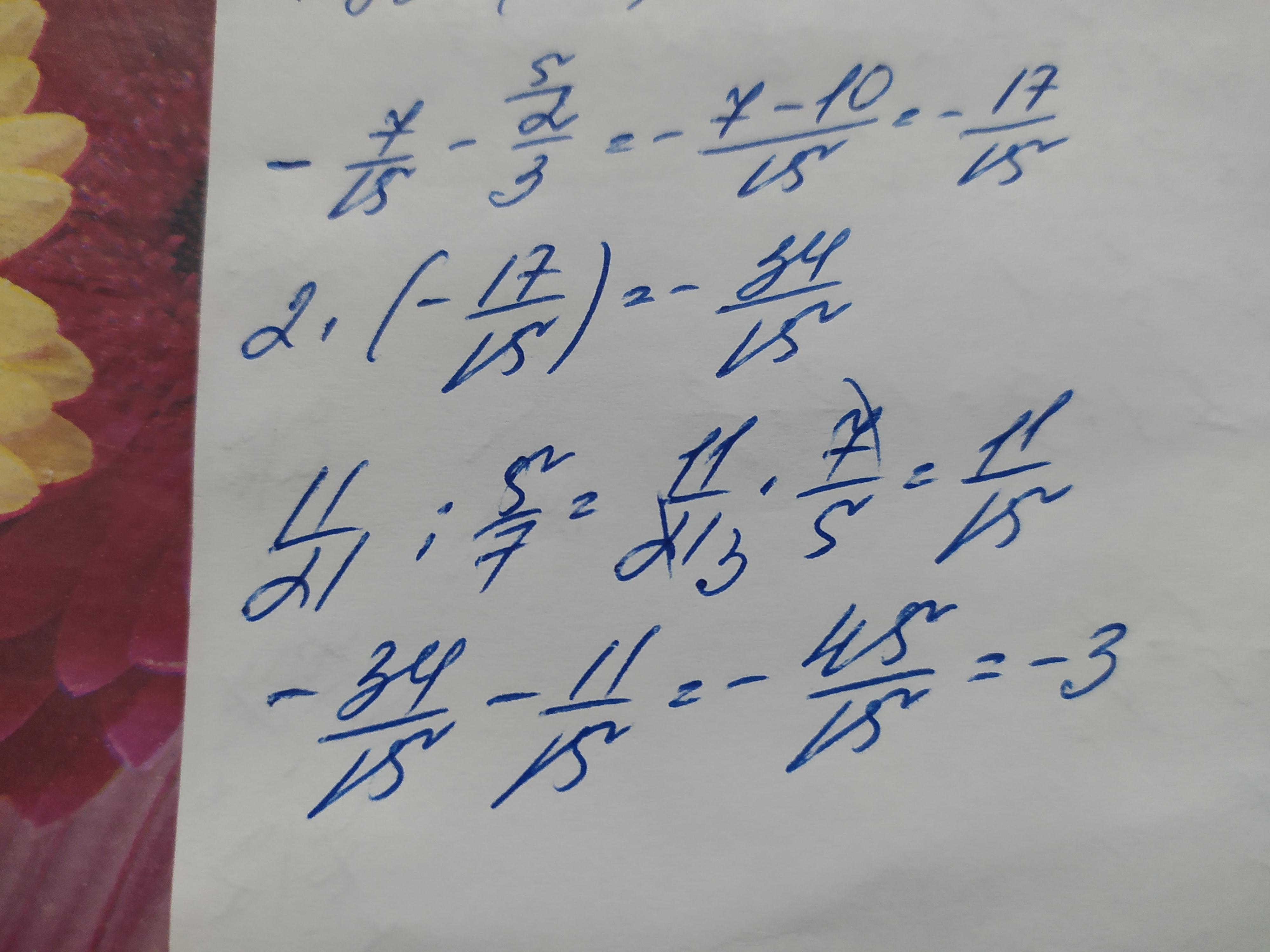2) 2 * (-17/15) = -34/15 = -2. 4/15