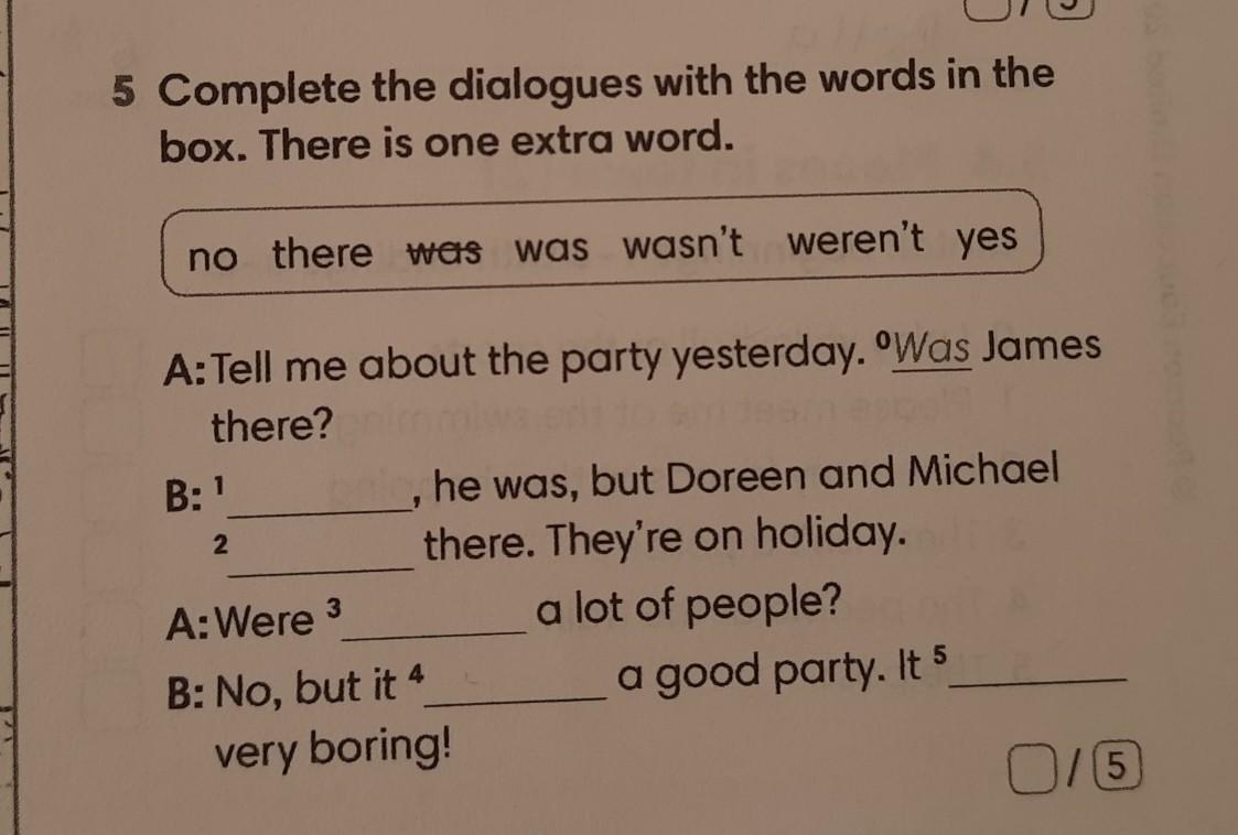 1. Yes 2. Weren’t 3. There 4. Was 5. Wasn’t