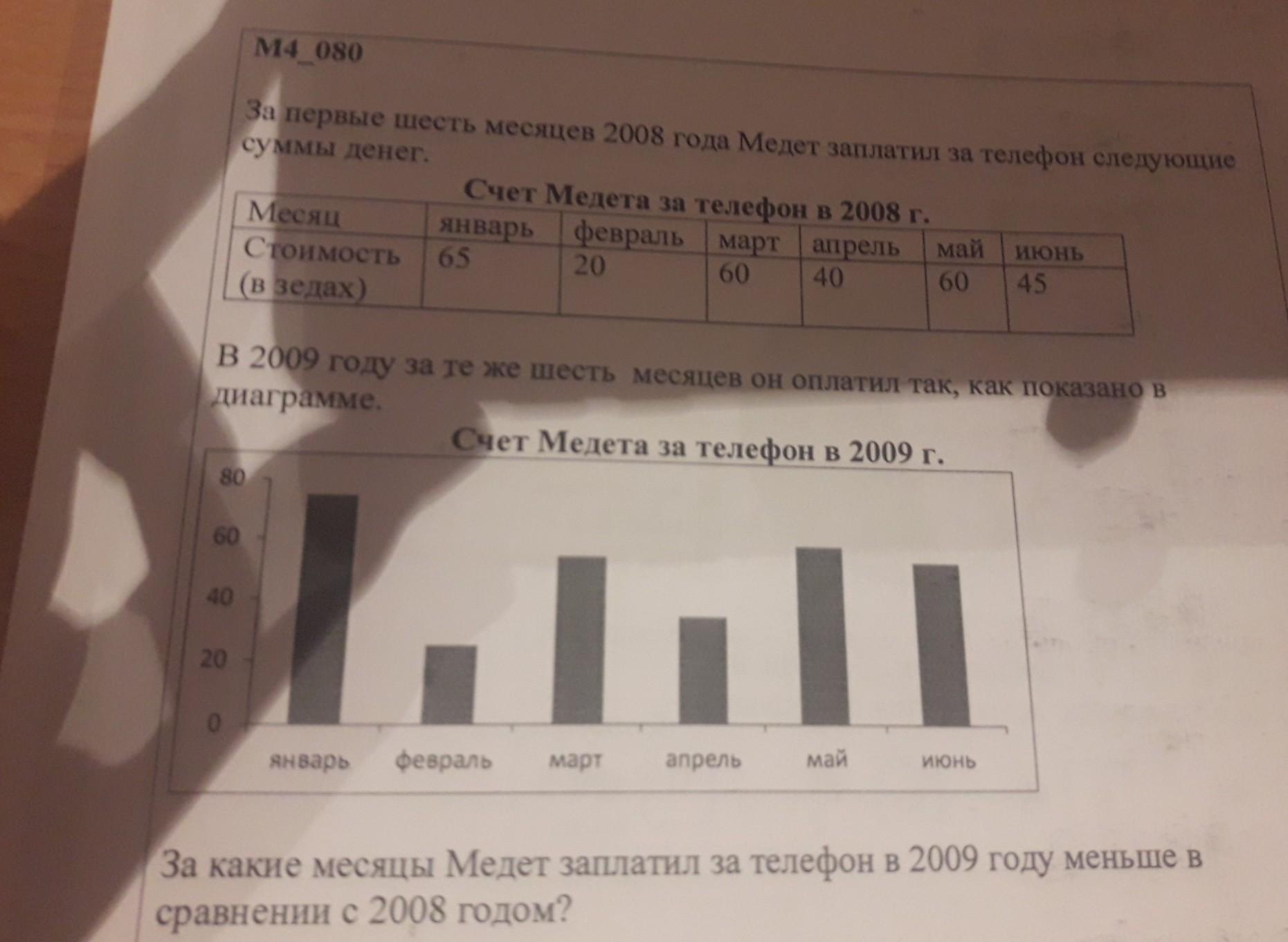 Медет заплатил за телефон в 2009г меньше в эти месяцы март ,апрель ,май