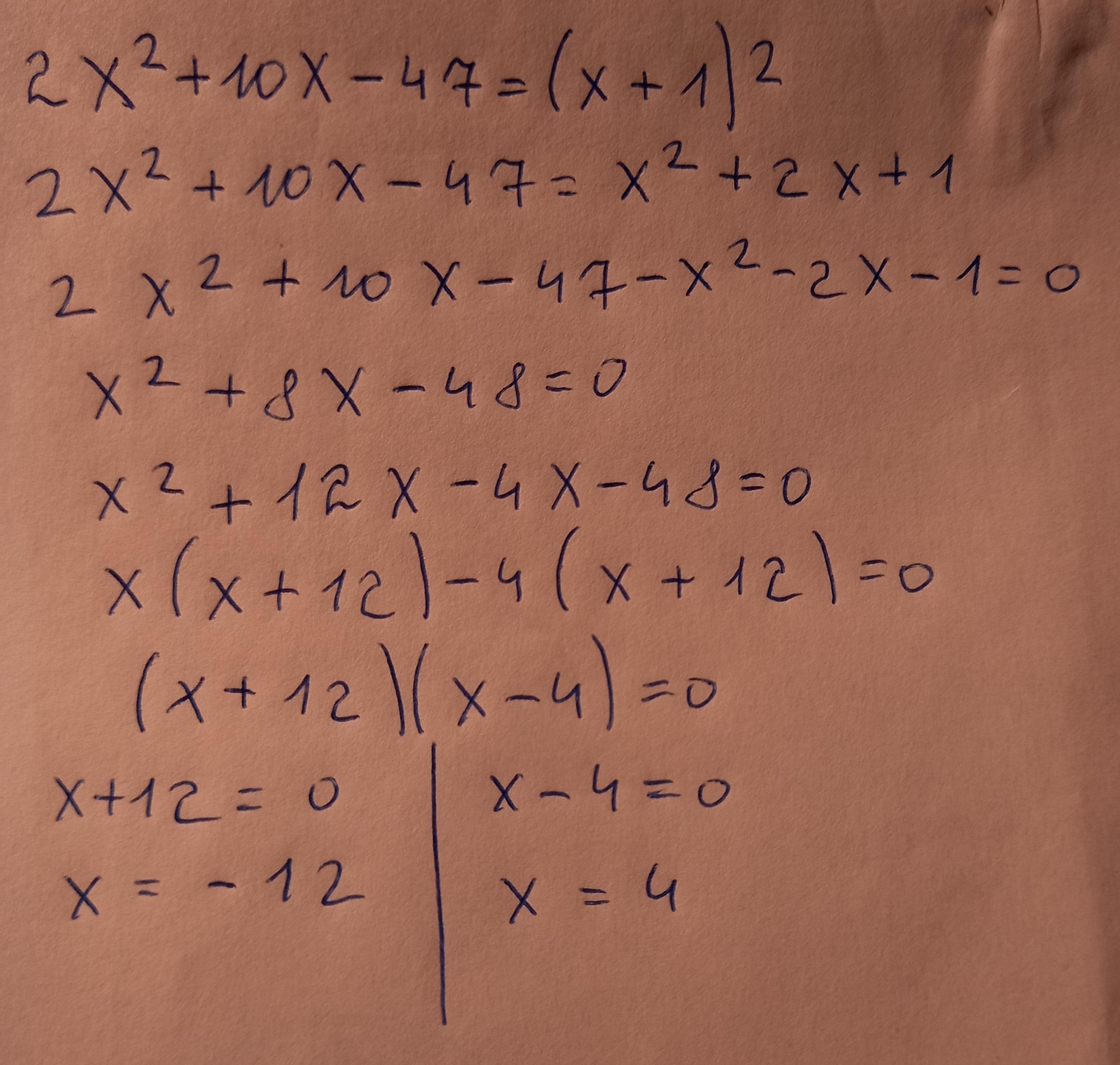 2x²+10x-47=x²+2x+1