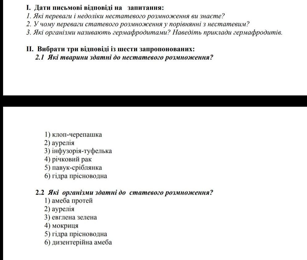 1.1 Перевага: Швидке розширення; Партнер не потрібен; Це практично в надзвичайних ситуаціях. Недоліки: У нього є деякі проблеми зі спадщиною; Організми мають тенденцію до вимирання; Ви не можете контролювати кількість; Несприятливі умови.