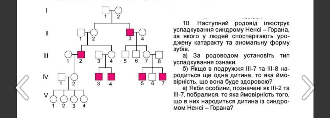 Даю 100 балів! Наступний родовід ілюструє успадкування синдрому Ненсі - Горана (далі - фотографія). Потрібне повне розв'язання б) і в).