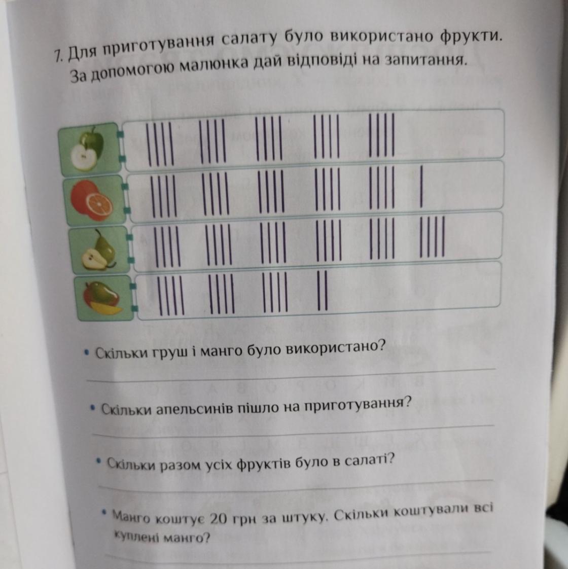 • Манго коштує 20 грн за штуку. Скільки коштували всі