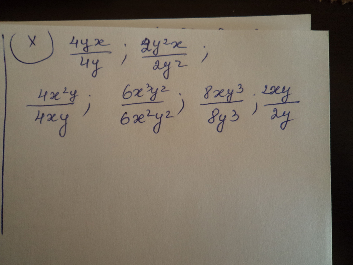 x/4y. x/2y² не сокращается; x/4xy=1/4y. x/6x²y²=1/6xy². 8y^3 не сокращается