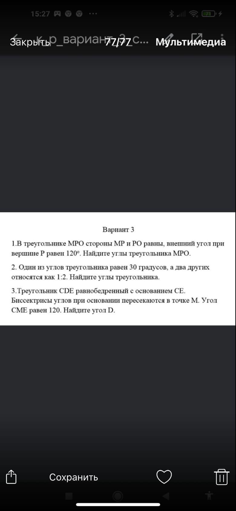 3. Все три угла треугольника в сумме равны 180°. Т.к. два угла равны по 60°, то и третий угол СДЕ тоже равен 60°.