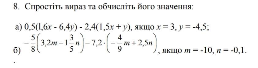 а) 0,8х-3,2у-3,6х-2,4у=-2,4х-5у