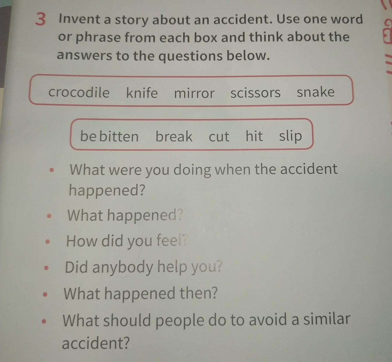 помогите с английским, пожалуйста. надо составить рассказ по плану, чтобы там были минимум два слова из перечисленных в рамках
