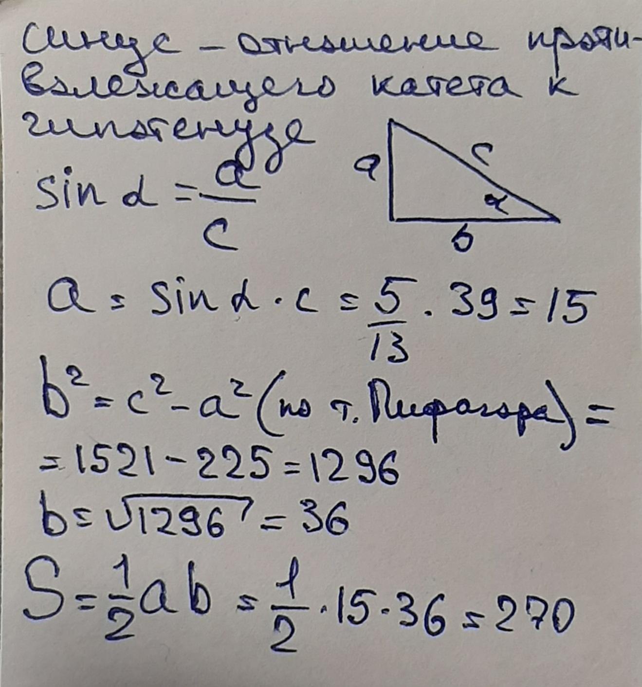 S=39²*(5/13)*(12/13)/2=270 ед².