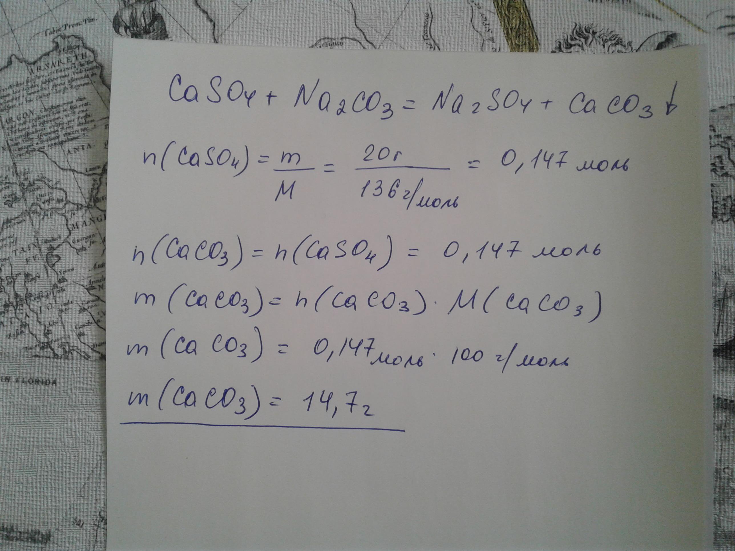 Определите массу осадка образуещего при взаимодействии 20 грамов сульфата кальция с карбонатом натрия Помогите пожалуйста
