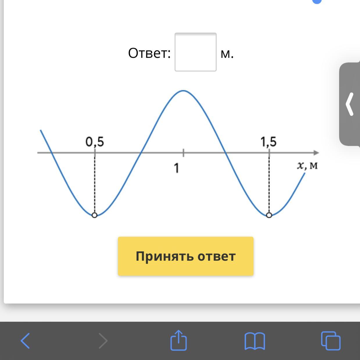 На рисунке представлен участок упругой нити, по которой распространяется волна. Определите длину распространяющейся волны (в метрах).