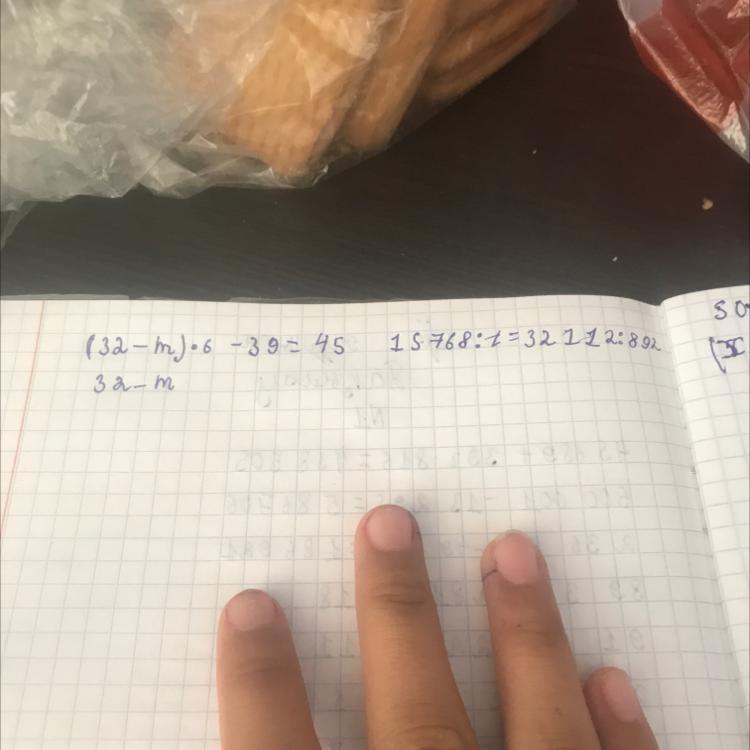 (32 - m) * 6 = 45 + 39