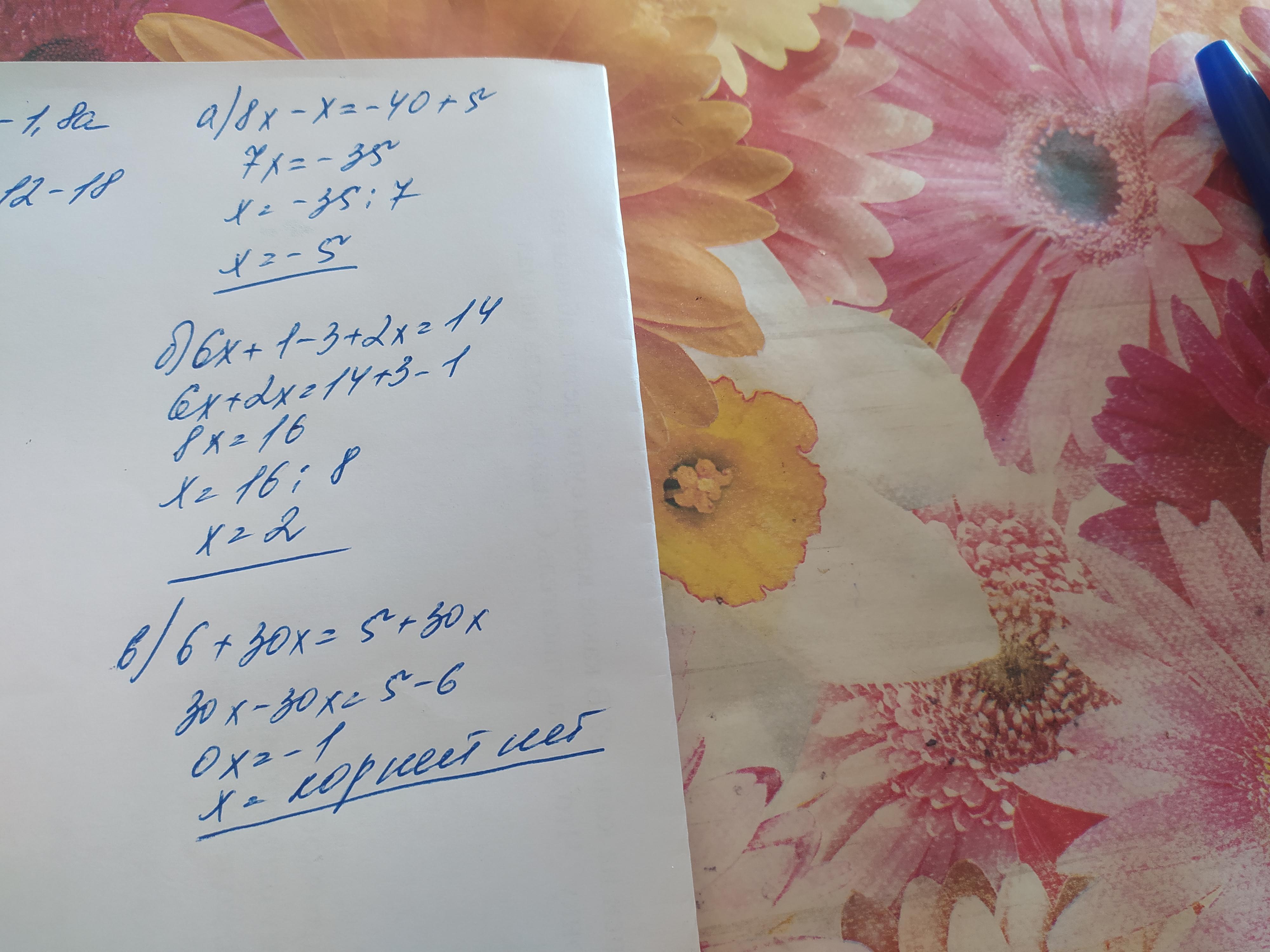 а) 8х - х = -40 + 5