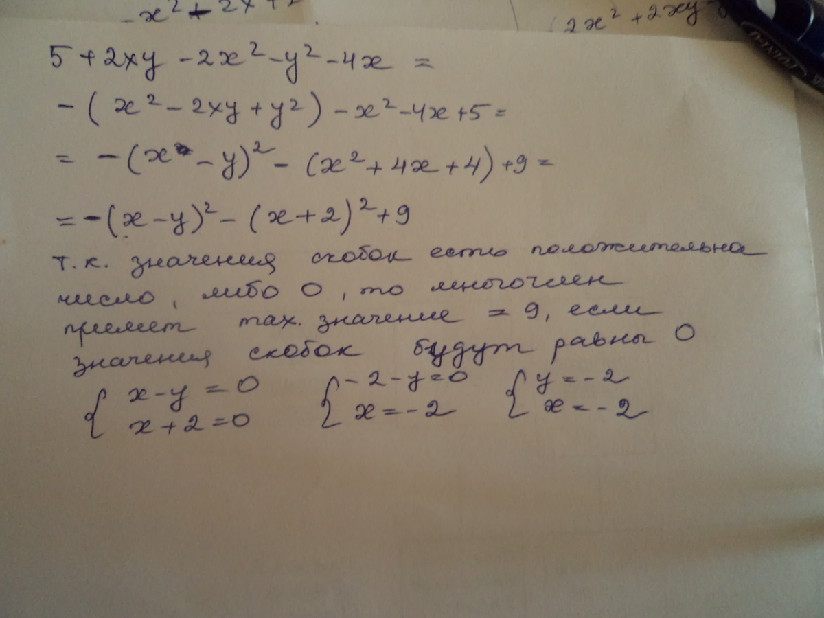 p(x;y)=5+2xy-(2x²+y²)-4x
