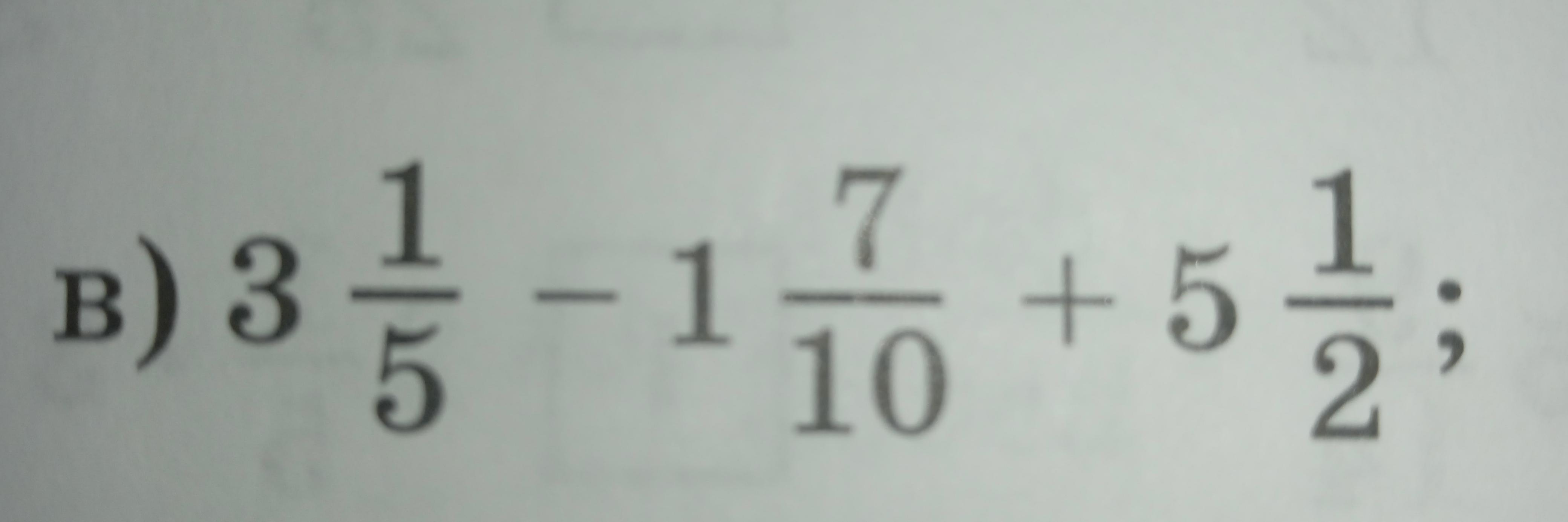 смотри 3 целых 1/5 и 1 целую 7/10 нужно перевести в неправильную дробь ето 16/5 -17/10 результат какой у тебя получился прибавь к нему 11/2 и все