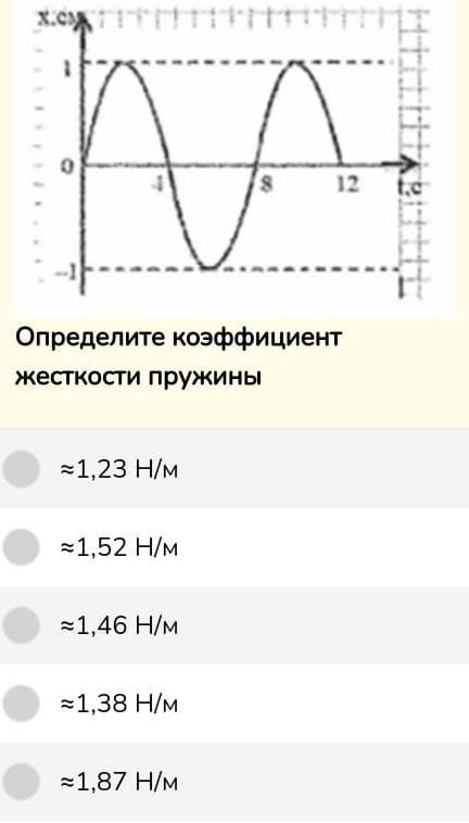 При проведении эксперимента пружинного маятника с телом массой 3 кг, получили гармонические колебания (см.график). (π2≈10)