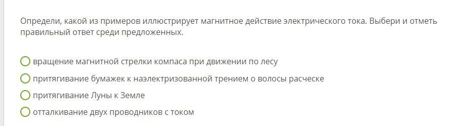 Физика Определи, какой из примеров иллюстрирует магнитное действие электрического тока