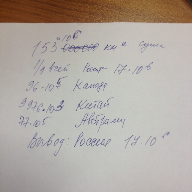 площадь суши на земном шаре составляет 153000000км2 .Россия занимает девятую часть всей суши Площадь Канады 9976000км2 Китая 9600000км2 Австралии 7700000км2.Какое из этих государств занимает самою большуб площадь? сравните площадь России с площадью каждой из перечисленных стран?