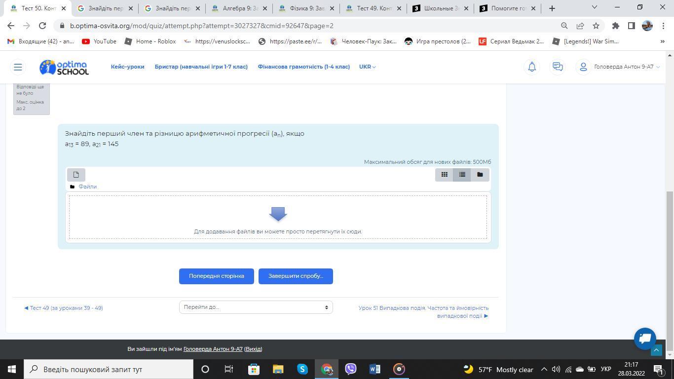 d = 7 , тоді із 1 - го рівняння а₁ = 89 - 12d = 89 - 12*7 = 5 ;