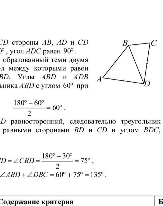 Три стороны выпуклого четырёхугольника равны, а два его угла между