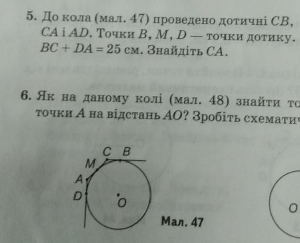 К окружности проведены касательные СВ,СА и АD. Точки В,М,D- точки касания, ВС+DA=25. Найти СА.