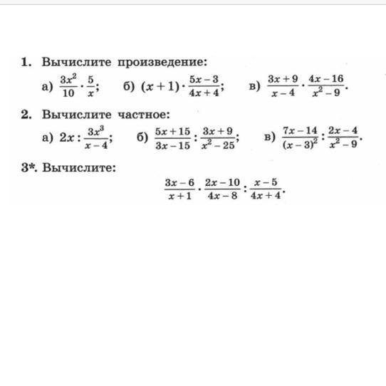 1. А) (х скоротим) 3х/2 Б) (x+1) • 5x-3/ 4(x+1) (x+1 скоротим) = 5х-3/4 В) 3•4/x-3 =12/x-3