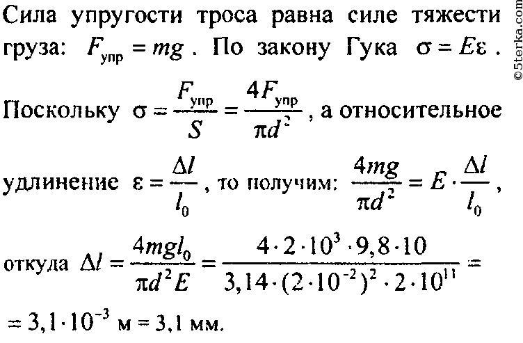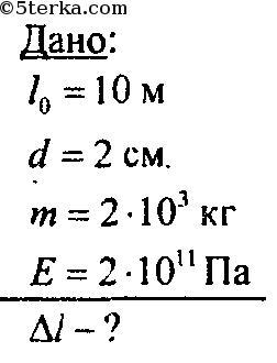 Определить напряжение и удлинение сечения с учетом собственного веса в вертикальной стальной штангу диаметром сечения 5 см длиной 10м, если растягивающий груз прикреплённый к штанге, имеет массу 2т. Модуль Юнга для стали 2*10^5 МПа, плотность стали 7,85*10^3 кг/м3