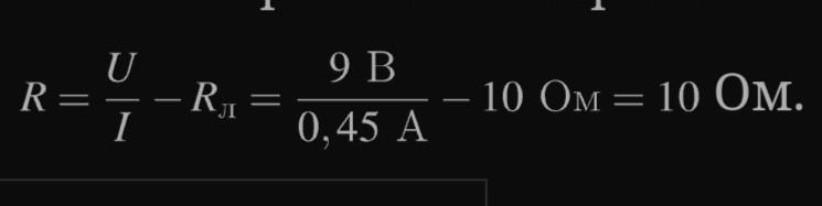 Учитывая, что такое соединение можно считать последовательным, при котором сила тока на всех участках цепи одинакова, получаем R_л плюс R= дробь: числитель: U, знаменатель: I конец дроби , откуда внутреннее Сопротивление равно.