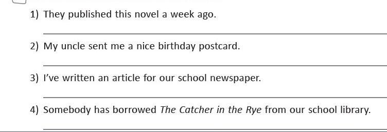 4. The Catcher in the Rye has been borrowed from our school library by somebody.