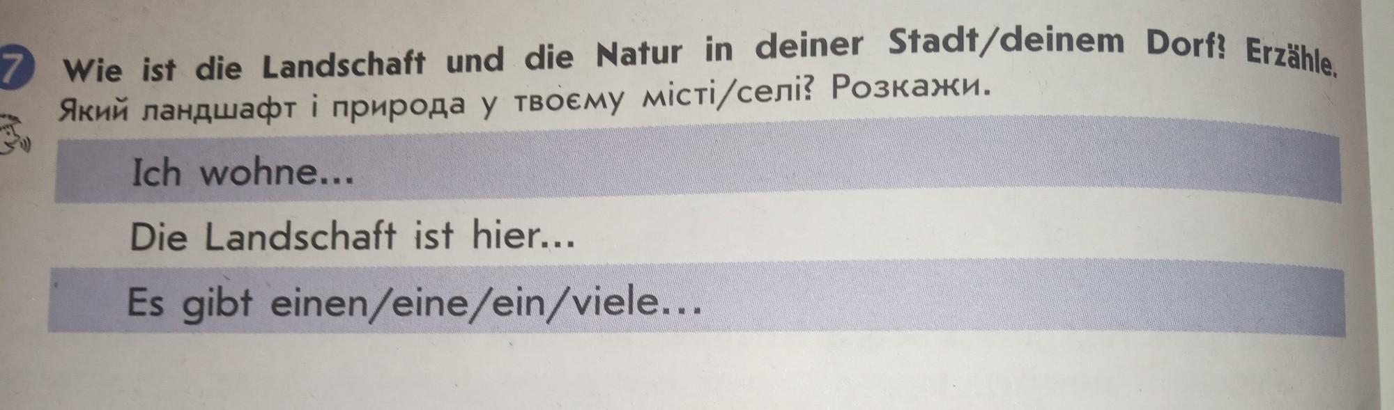 Ich wohne im Dorf <название села>, es ist sehr schön hier. Vögel singen. Bäume stehen mit grünen Blättern, Blumen blühen. Im Frühling ist es hier sehr schön.