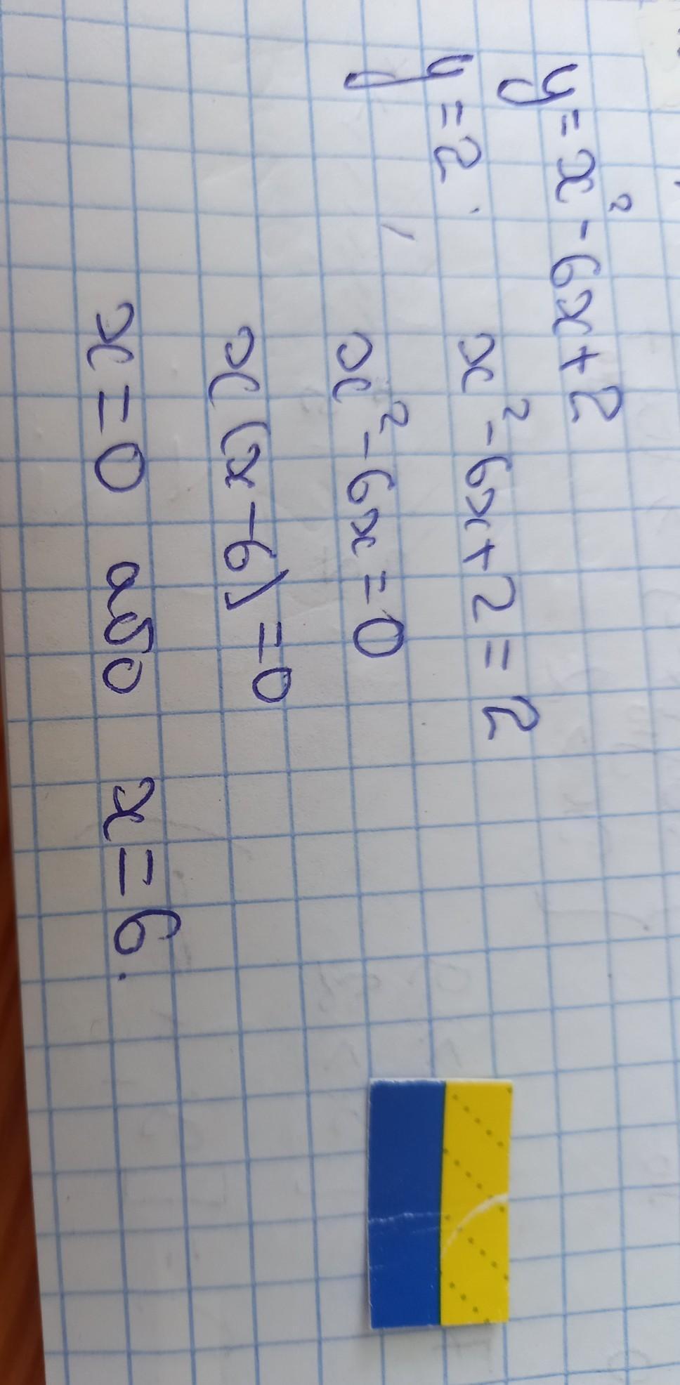 Функція задана формулою y=x²- 6x+2. Знайдіть значення аргумент яким відповідає значення функції у-2.