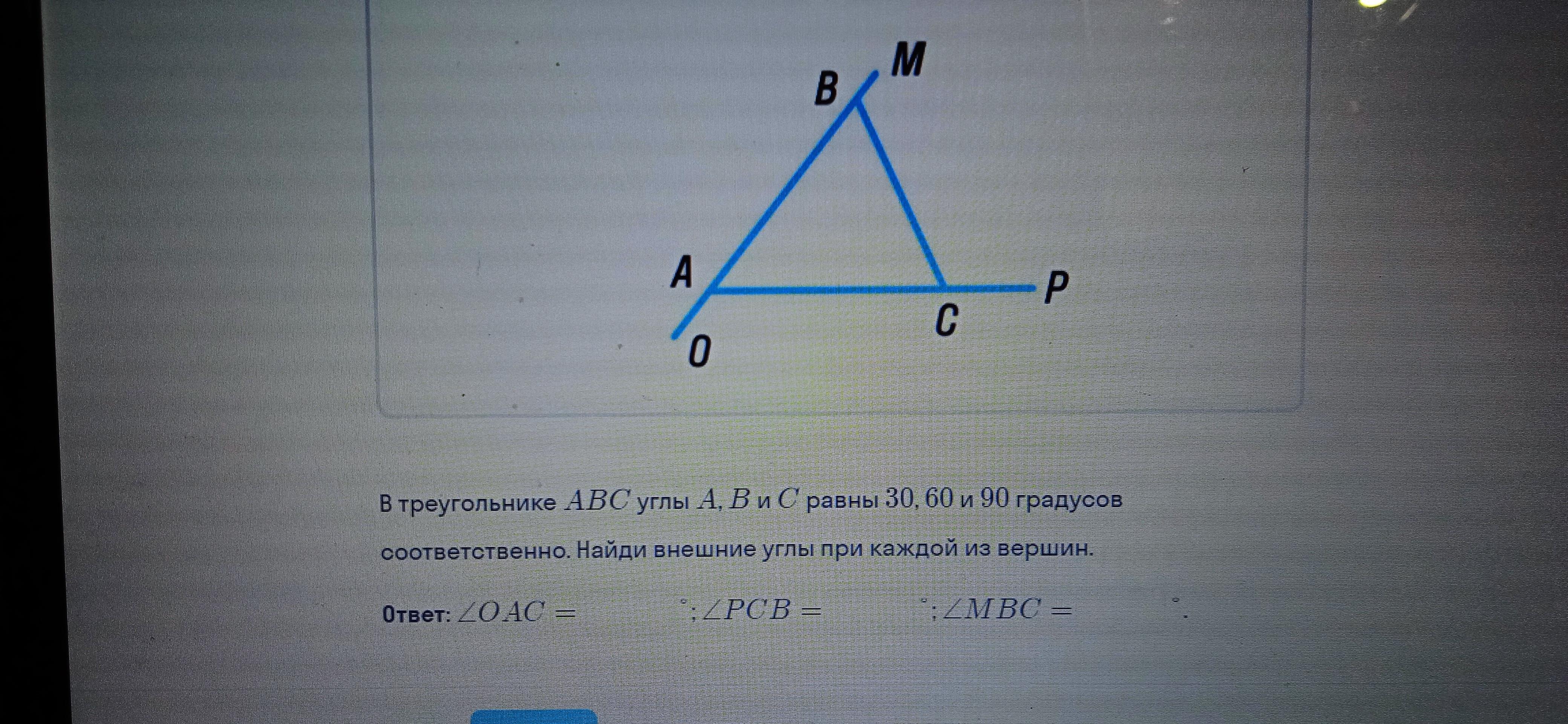 Внешний угол треугольника составляет с внутренним углом развернутый угол 180° ⇒: