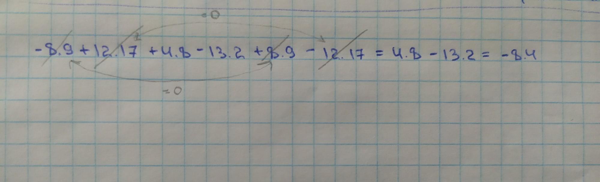 Мы сокращаем -8.9 и +8.9, так как они в сумме дают 0.