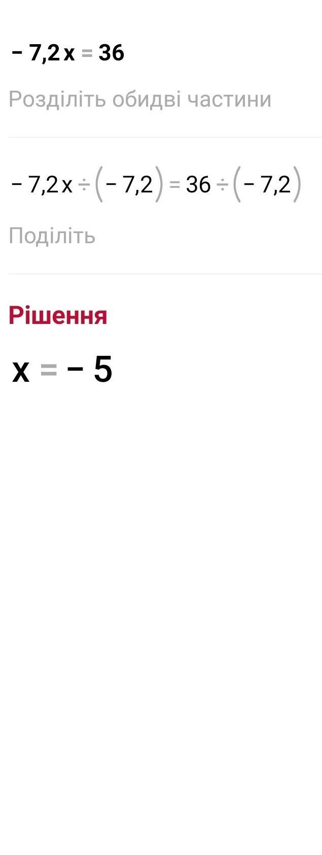 -7,2x÷(-7,2)=36÷(-7,2)