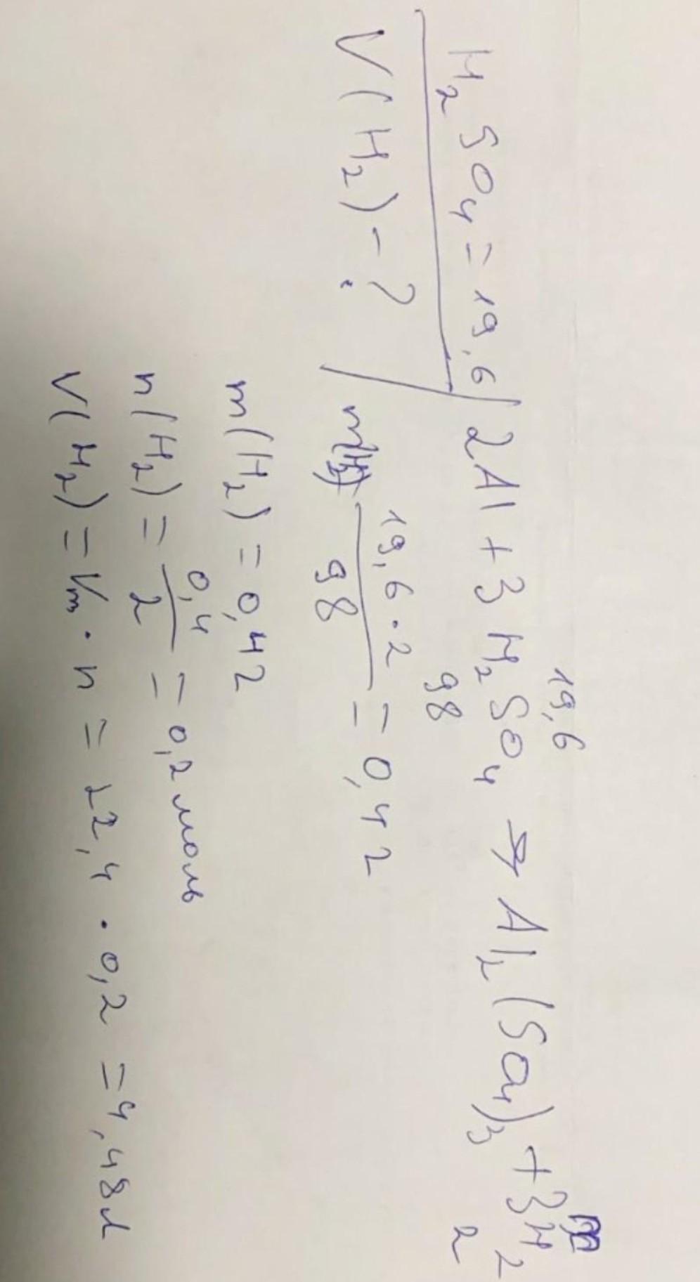 який об'єм водню виділиться під час взаємодії алюмінію з розчином, що містить 19,6 г сульфатної кислоти