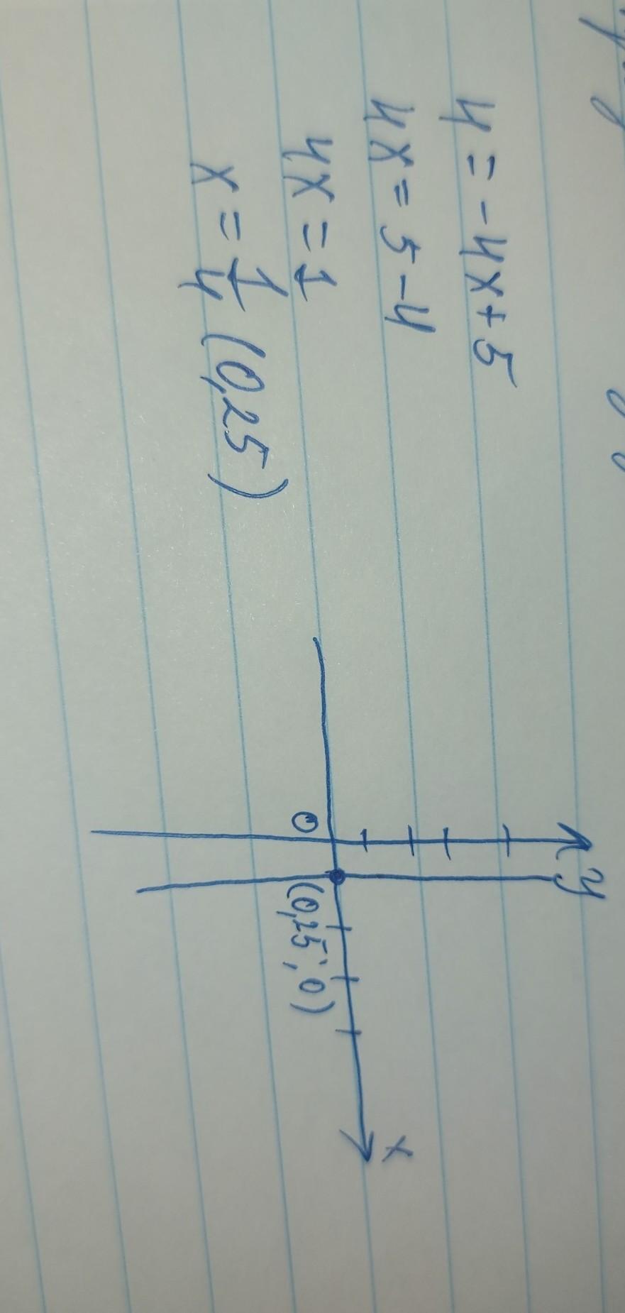 СРОЧНОООО Побудуйте графік функції 4 = - 4x + 5 Kористуючись графіком функцій укажіть координати точок перетину графіка з осями координат
