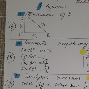 1) tg B = AC : CB = 5 : 12 = 5/12