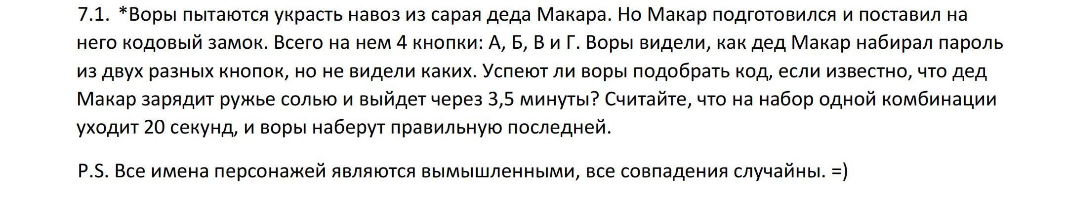 Всего существует 4! ( факториал) подбора кода = 4х3х2х1 = 24.