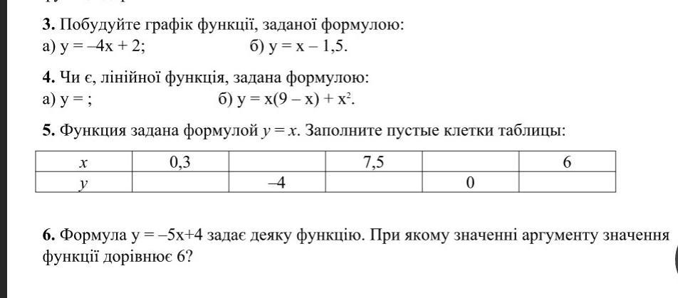 6)Формула у = –5x+4 задает линейную функцию( прямую)