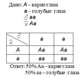 блакитнрокий чоловік батьки якого мали карі очі одружився з кареокою жінкою.у батька якої очі були блакитними а в матері карі.Якого потомства можна очікувати в цьому шлюбі якщо відомо що ген карих очей домінує над геном блакитних