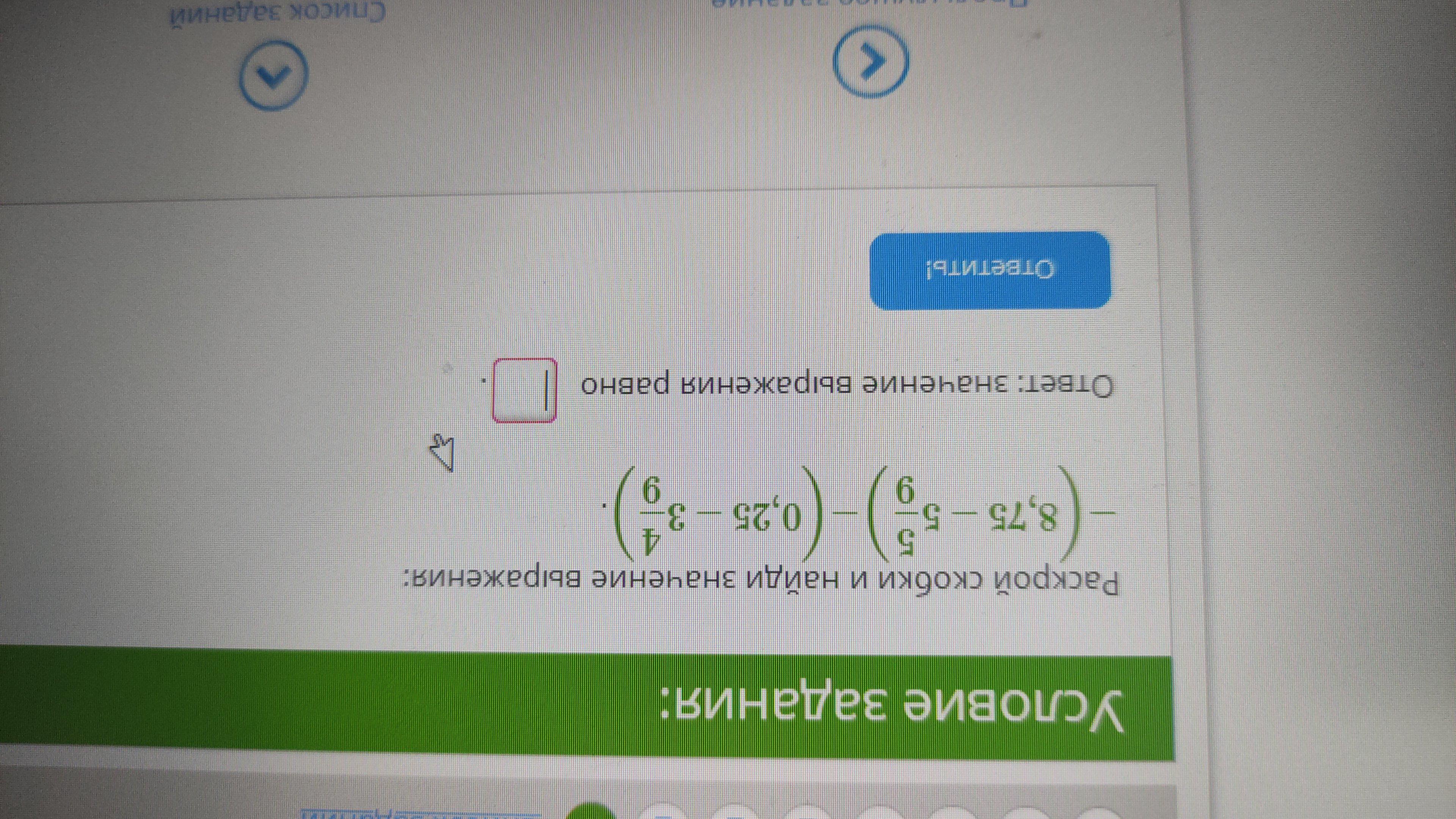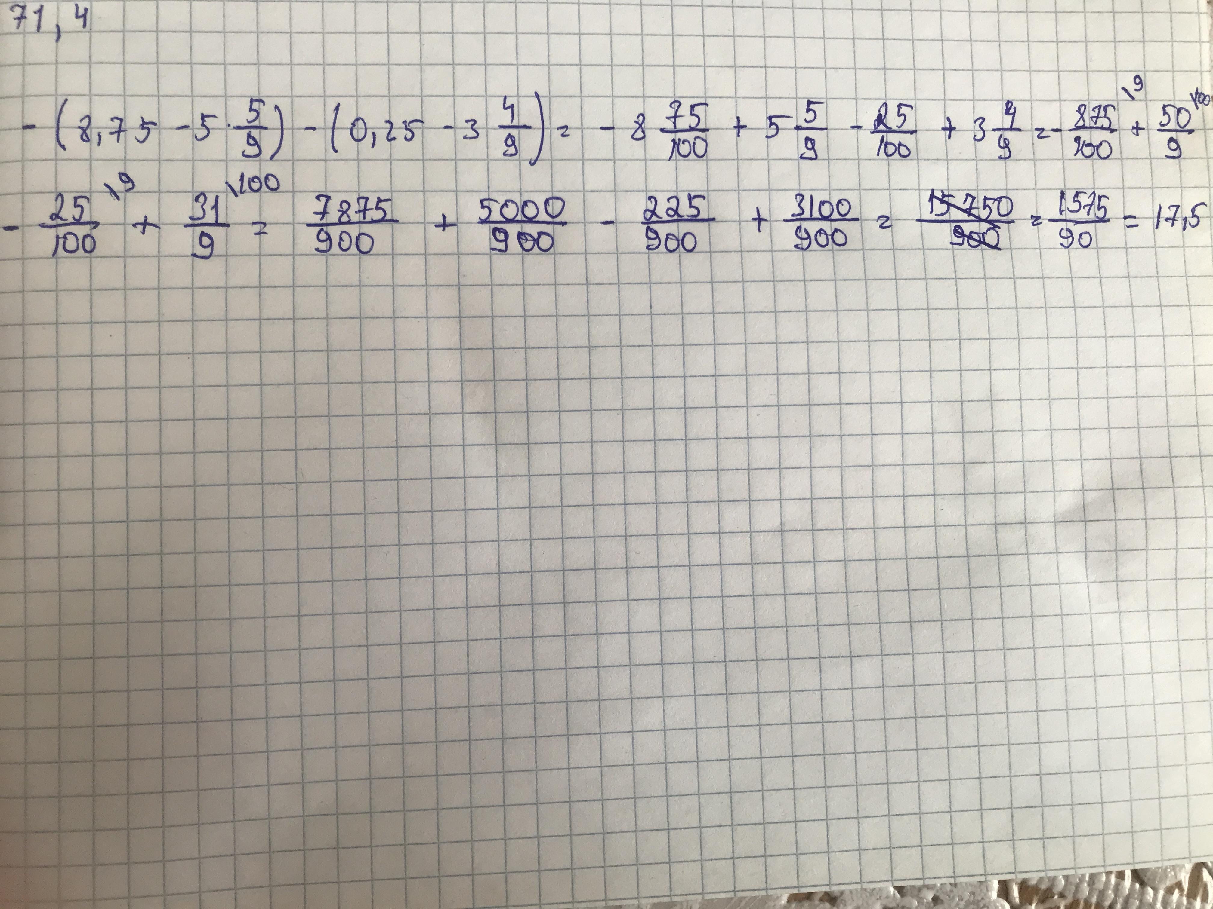 раскрой скобки и найди значение выражения: -(8,75- 5 5/9)-(0,25- 3 4/9).