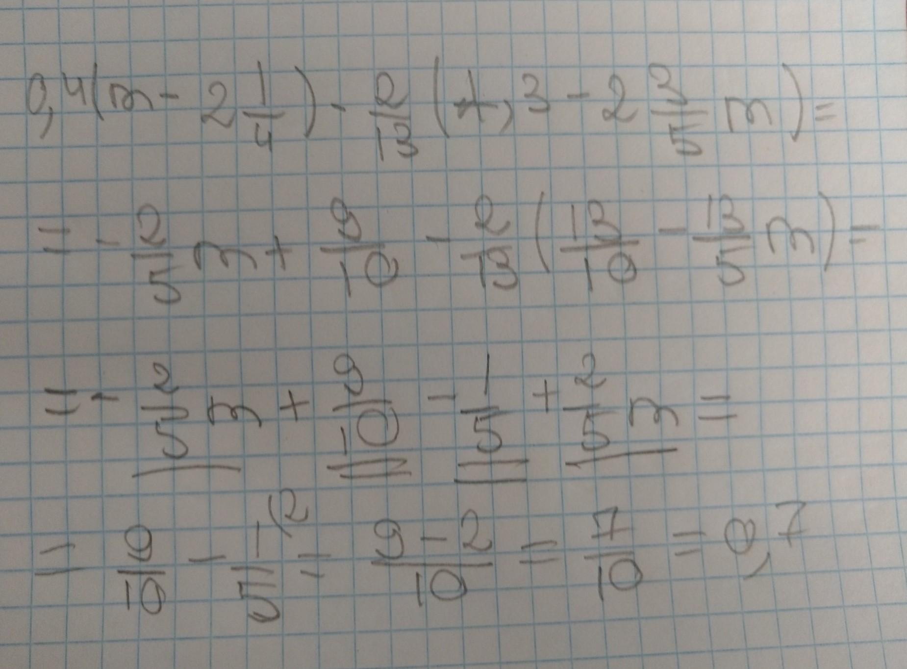 Доведи, що значення виразу -0,4 (m-2¼)–2/13(1,3–2⅗m) не залежить Зачення змінної