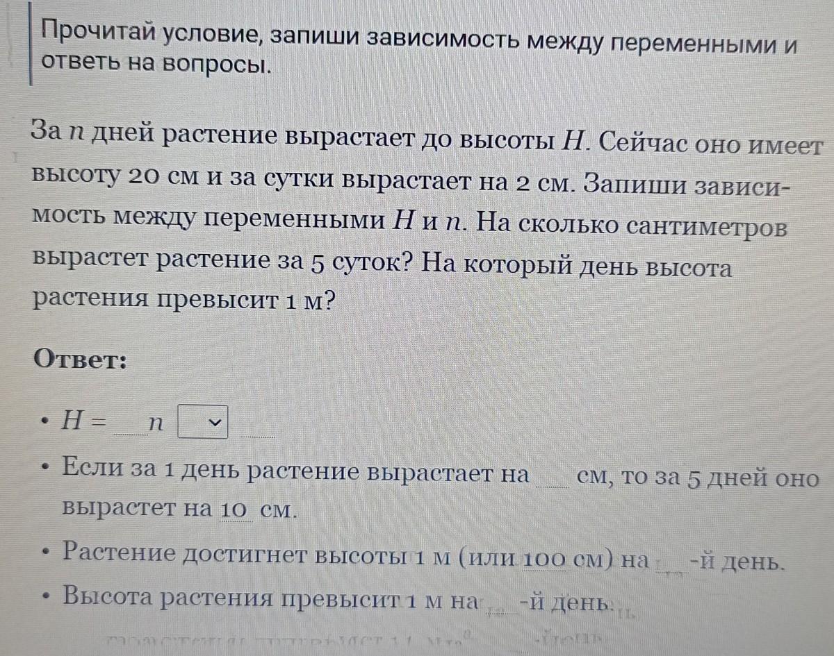 Если за 1 день растение вырастет на 2 см, то за 5 дней вырастет на 10 см
