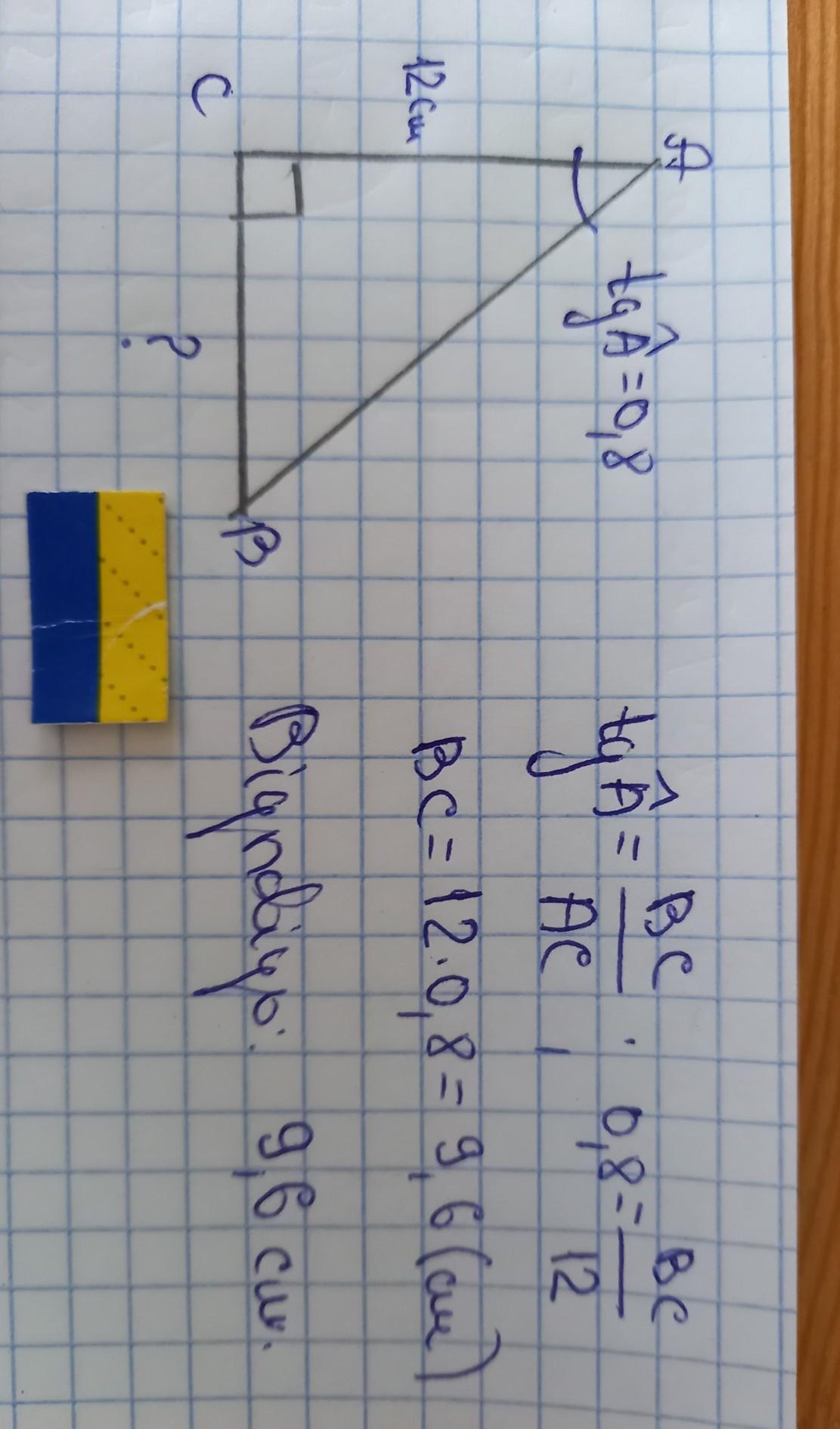 2. У прямокутному трикутнику АВС (∠С = 90°) АС = 12 см, = 0,8. Знайдіть катет ВС .